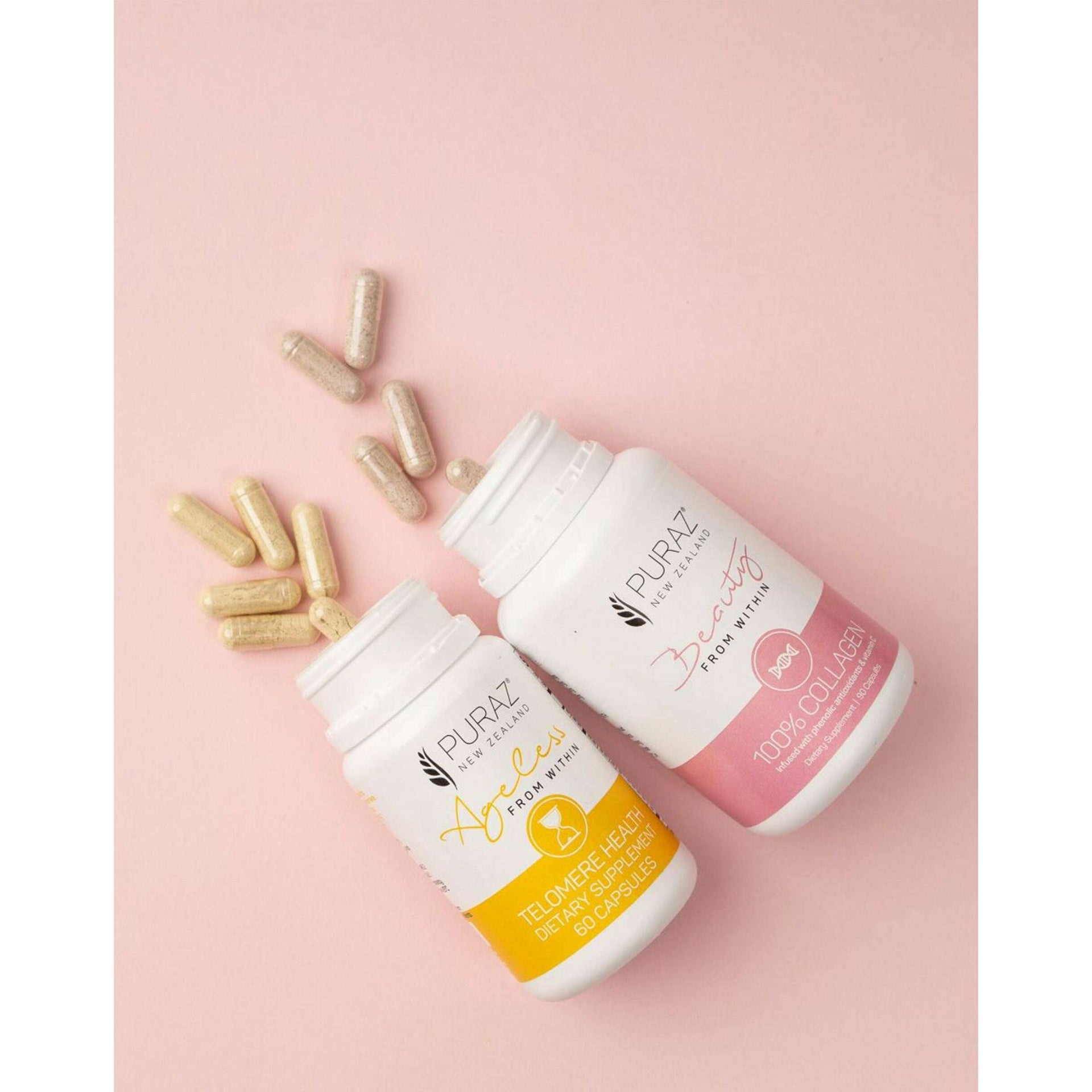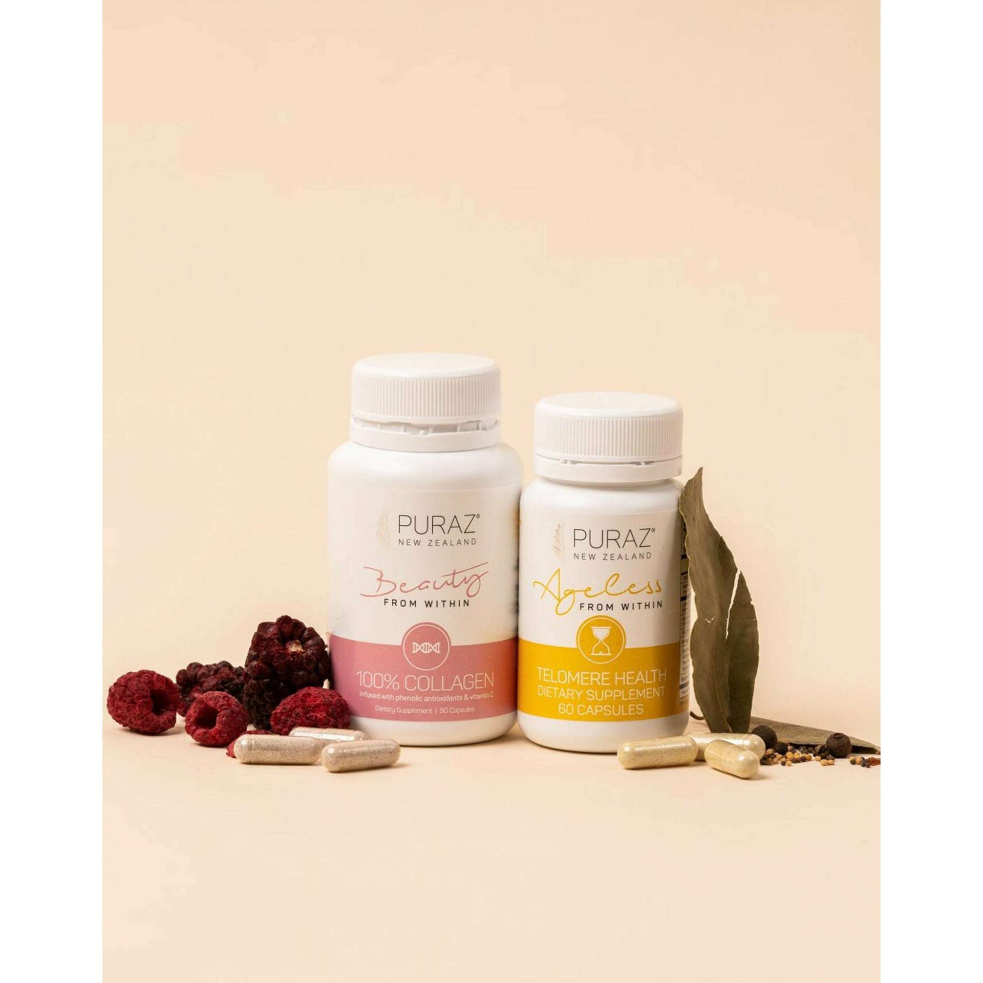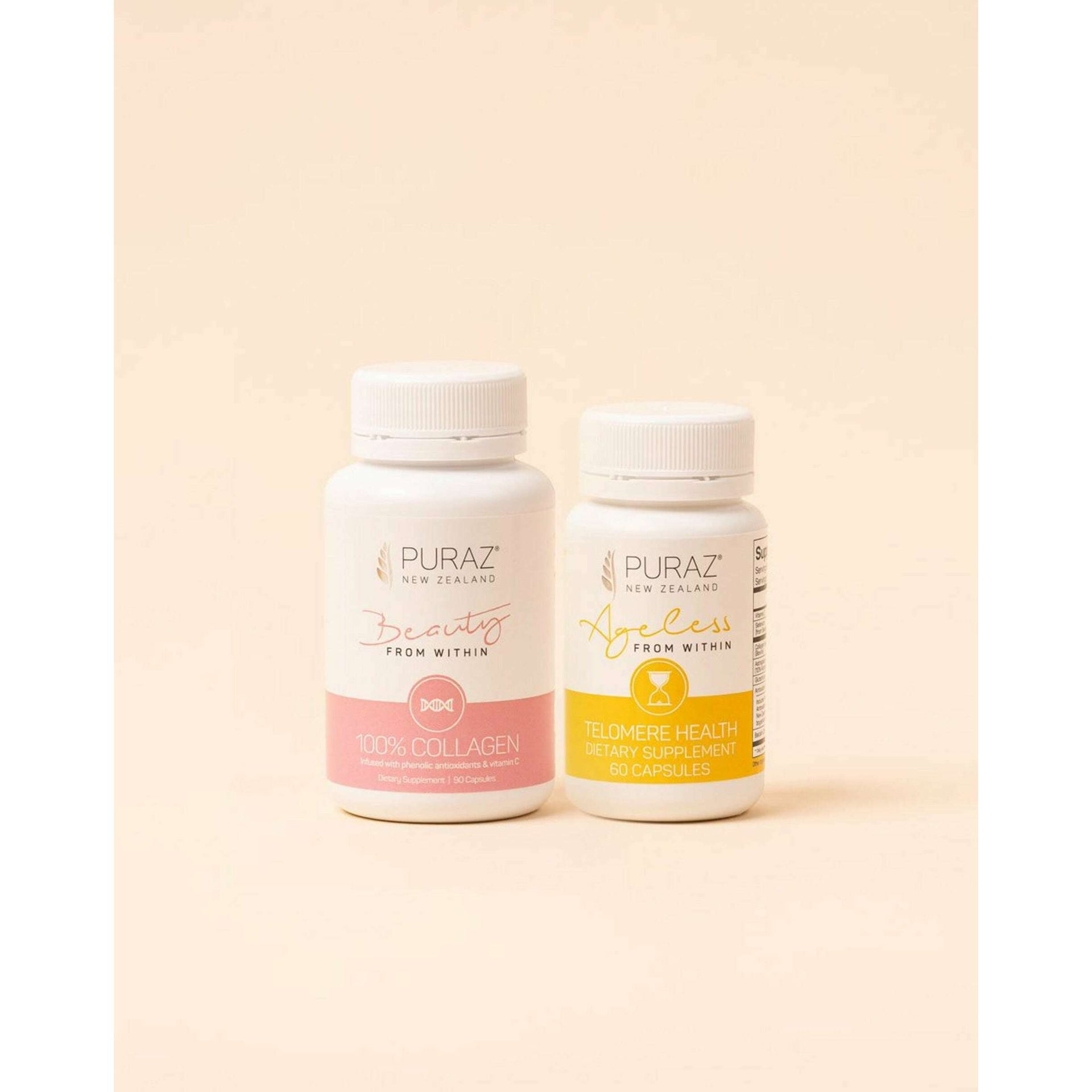 When Puraz Collagen Infusion Capsules and Puraz Telomere Health are taken in combination, you have targeted support for: