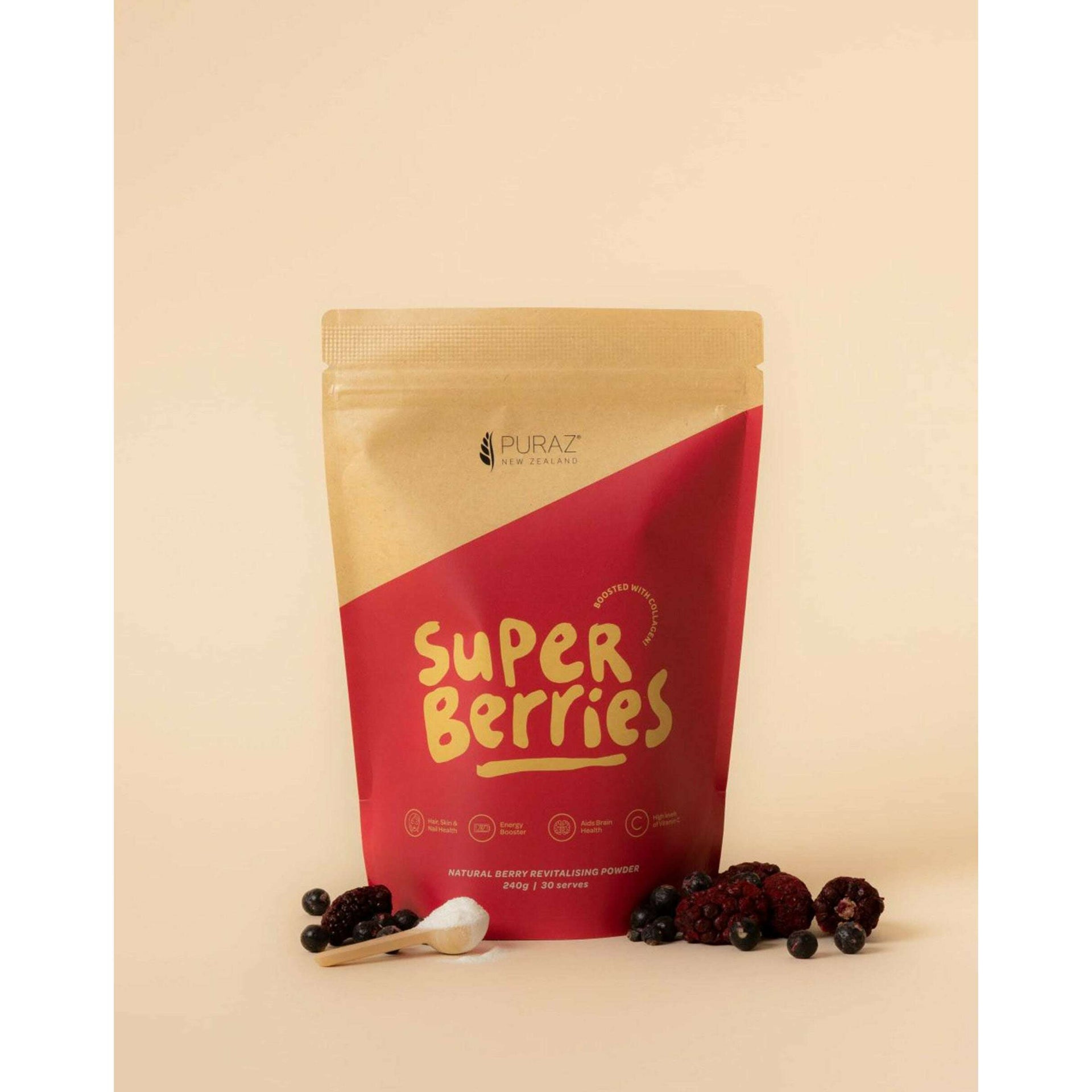 Puraz have combined the antioxidant goodness of New Zealand organic blackcurrants and boysenberry powder, mixed with a dash of collagen to support your hair, skin, and gut health.